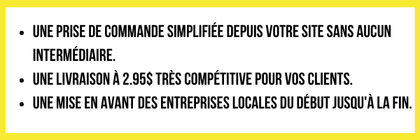 Sans compter que contrairement à nos gros compétiteurs comme Ubereats, chez nous : les restaurateurs configurent ce qu’ils souhaitent afficher sur leur menu sans avoir à redonner un pourcentage élevé de leurs revenus!